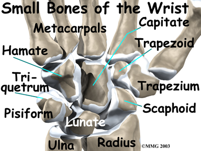 One reason that the wrist is so complicated is because every small bone forms a joint with the bone next to it. This means that what we call the wrist joint is actually made up of many small joints. Ligaments connect all the small bones to each other. Ligaments also connect the bones of the wrist with the radius, ulna, and metacarpal bones.